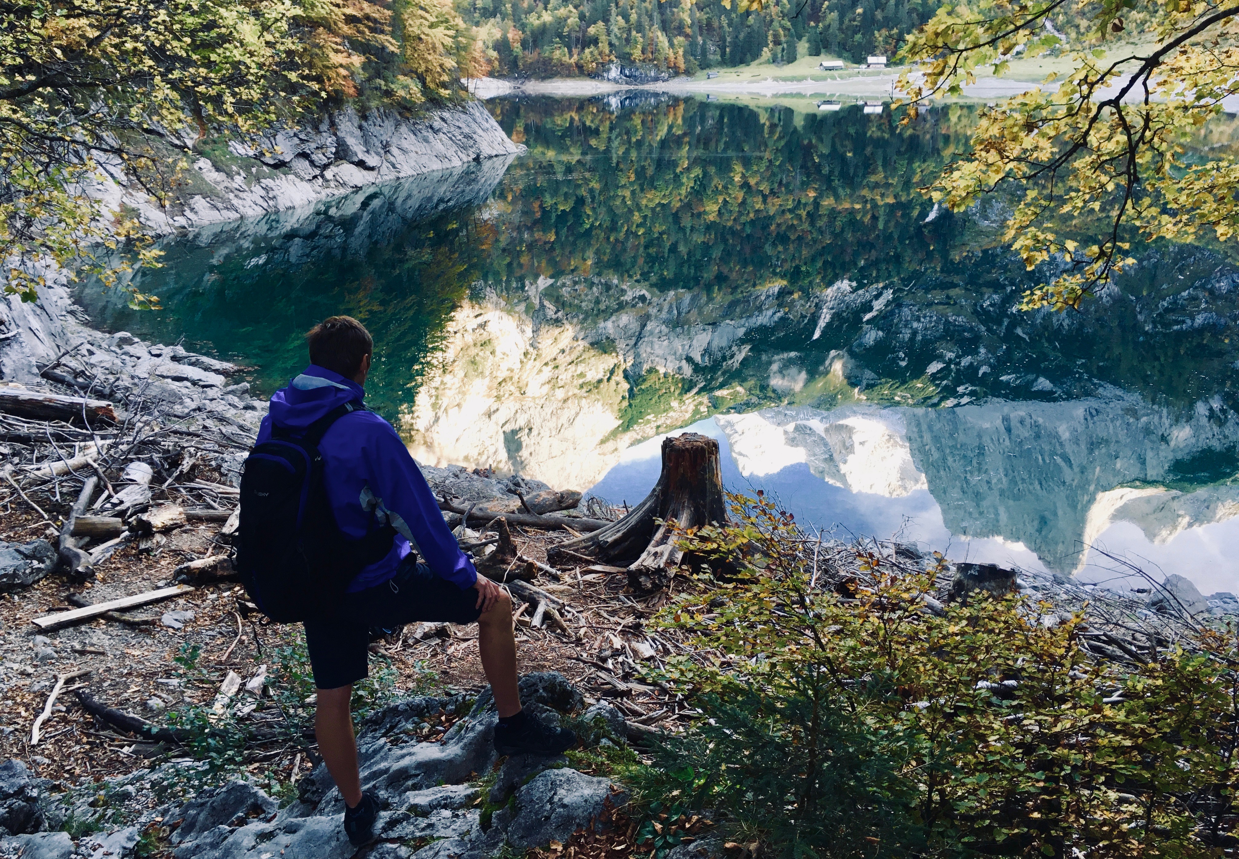 Několik lidí svou procházku během cesty vzdává, my však vytrvali a opravdu to stálo za to. Horní jezero mělo hodinu před západem slunce neskutečně magickou atmosféru a vzhledem ke komornímu počtu dovolenkářů, se kterými jsme v ten moment Hinterer Gosausee sdíleli, se jednalo o jeden z našich nejúchvatnějších zážitků od rakouských jezer vůbec. Stíny hor se odrážely v jezeře a spolu s podzimně zabarveným listím stromů to byla nechberoucí podívaná.