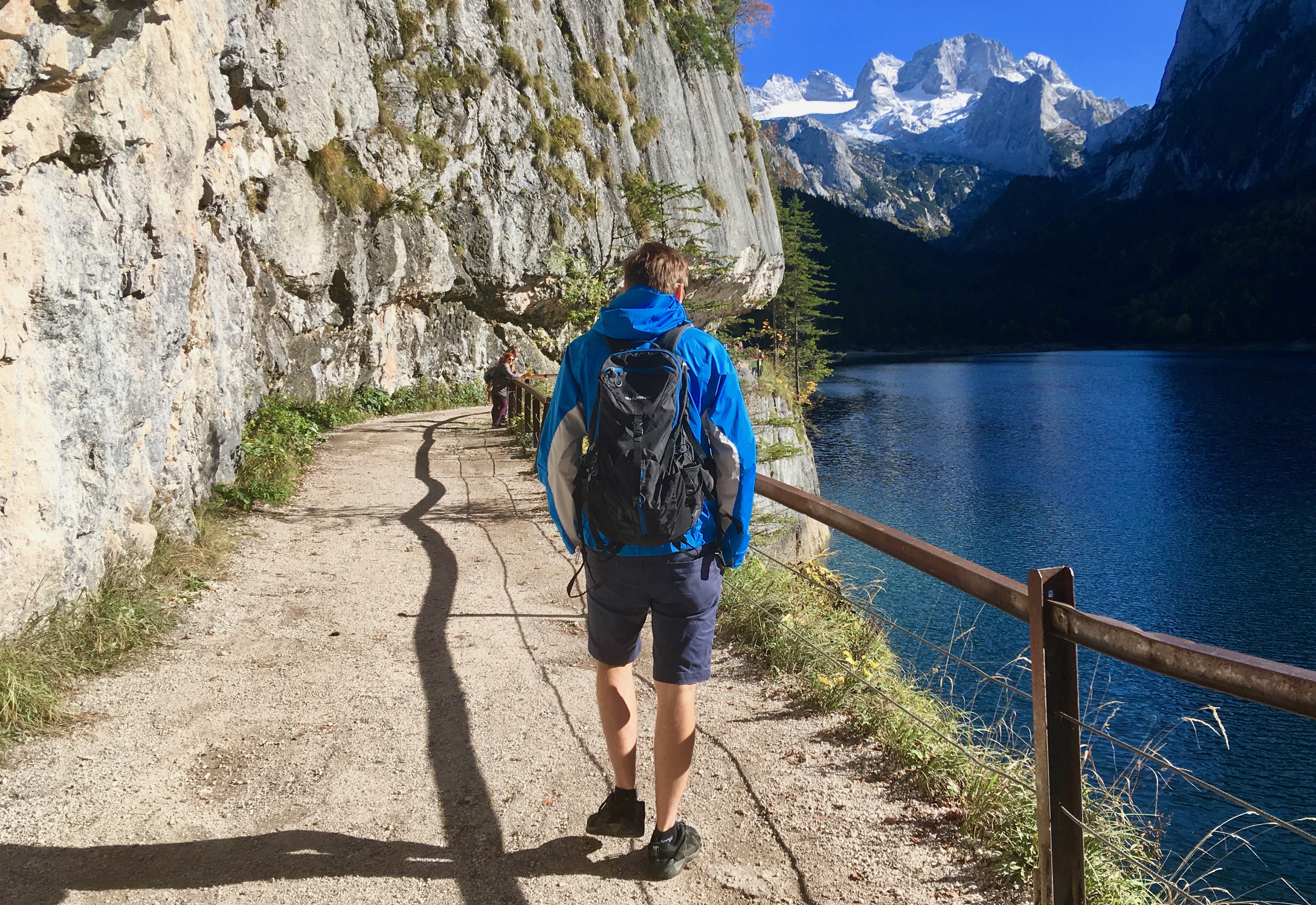 Vypravit se na procházku je možné z obou stran. My se vydáváme po hlavní trase dle směru cedulí vedoucích k zadnímu horskému jezeru. Dle mapy se jezera nazývají Vorderer Gosausee a Hinterer Gosausee. Uprostřed je malé třetí jezero, Gosaulacke, které během léta mírně vysychá. Dle značení by trek k hornímu jezeru měl trvat okolo 1,5 – 2 hodin.