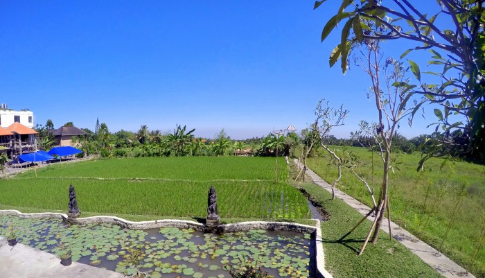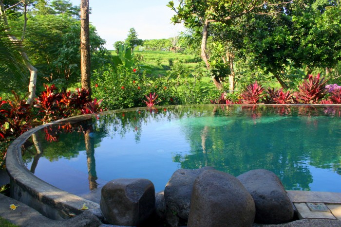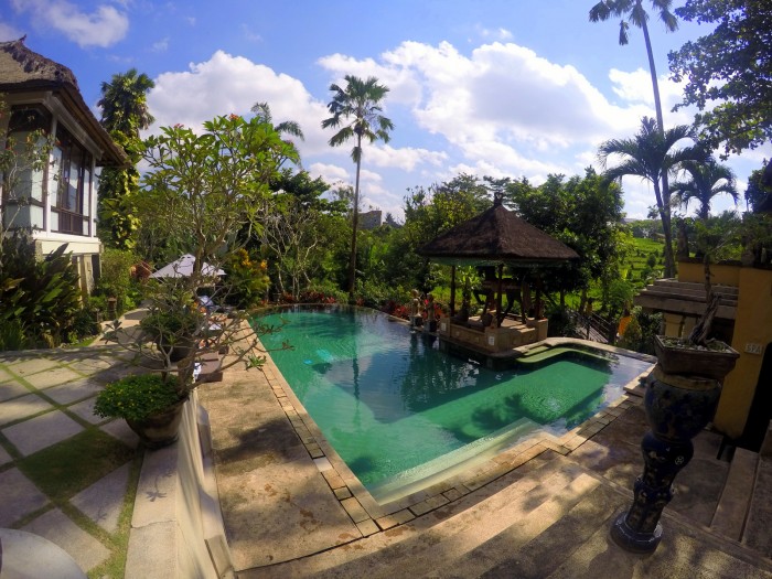 Ubytování na Bali – Alam Puri Hotel – Hotelový bazén s neskutečným výhledem na rýžová pole, skoro celý zbytek odpoledne jsme ho měli po návratu z Ubudu jen pro sebe / foto: Petra Švehlová Stowasserová, dovolenkářka