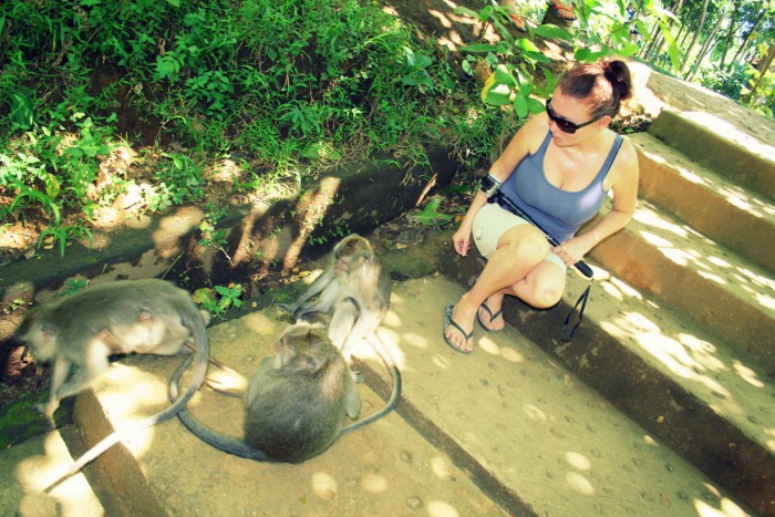 Mám opice ráda, takže na tohle místo jsem se těšila. Z centra města se sem dostanete pěšky asi za půl hodiny. Pro ty pohodlnější se tu nabízí samozřejmě taxi na každém rohu. My si cestu zpříjemnili v jednom z místních barů a nechali si vyrobit domácí zázvorovou limonádu. Opičí komplex má 2 vstupy, je jedno kudy vstoupíte. Zaplatíte pár korun a hned od vstupu jste obklopeni malými i velkými opicemi.