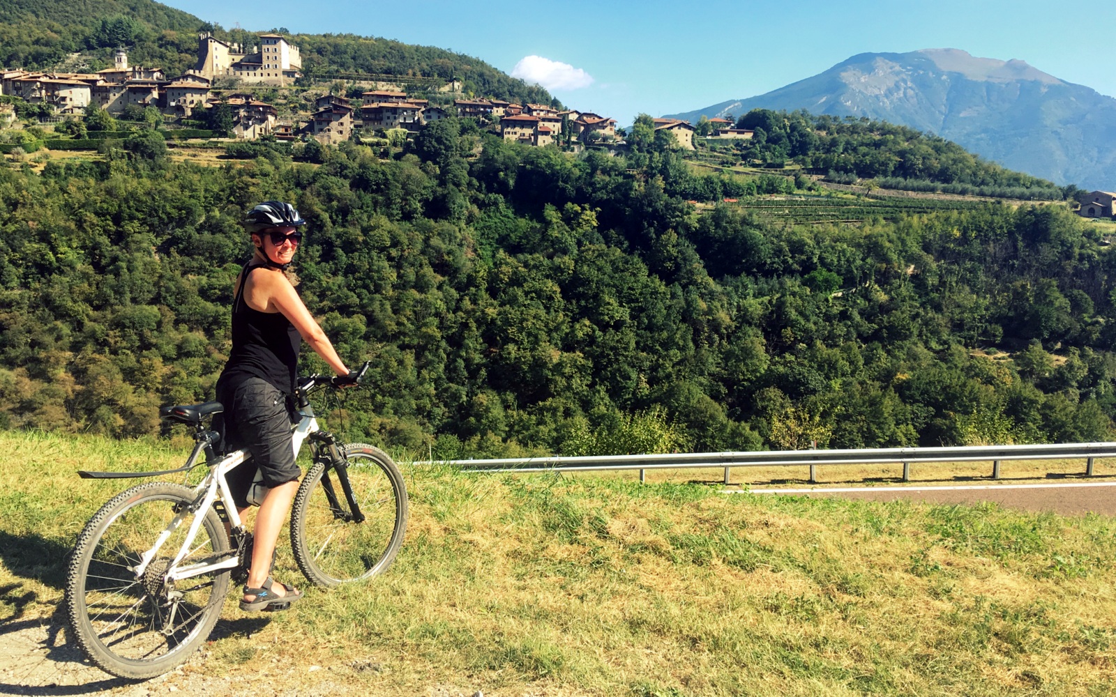 • Typ kola: Doporučuje se horské nebo trekingové kolo kvůli kamenitému terénu na některých částech trasy. Osobně máme klasické horské kolo, pokud však nejste vášnivými cyklisty, hodí se vám pro tento úsek spíš elektrokolo, které se dá zapůjčit i přímo na Gardě.