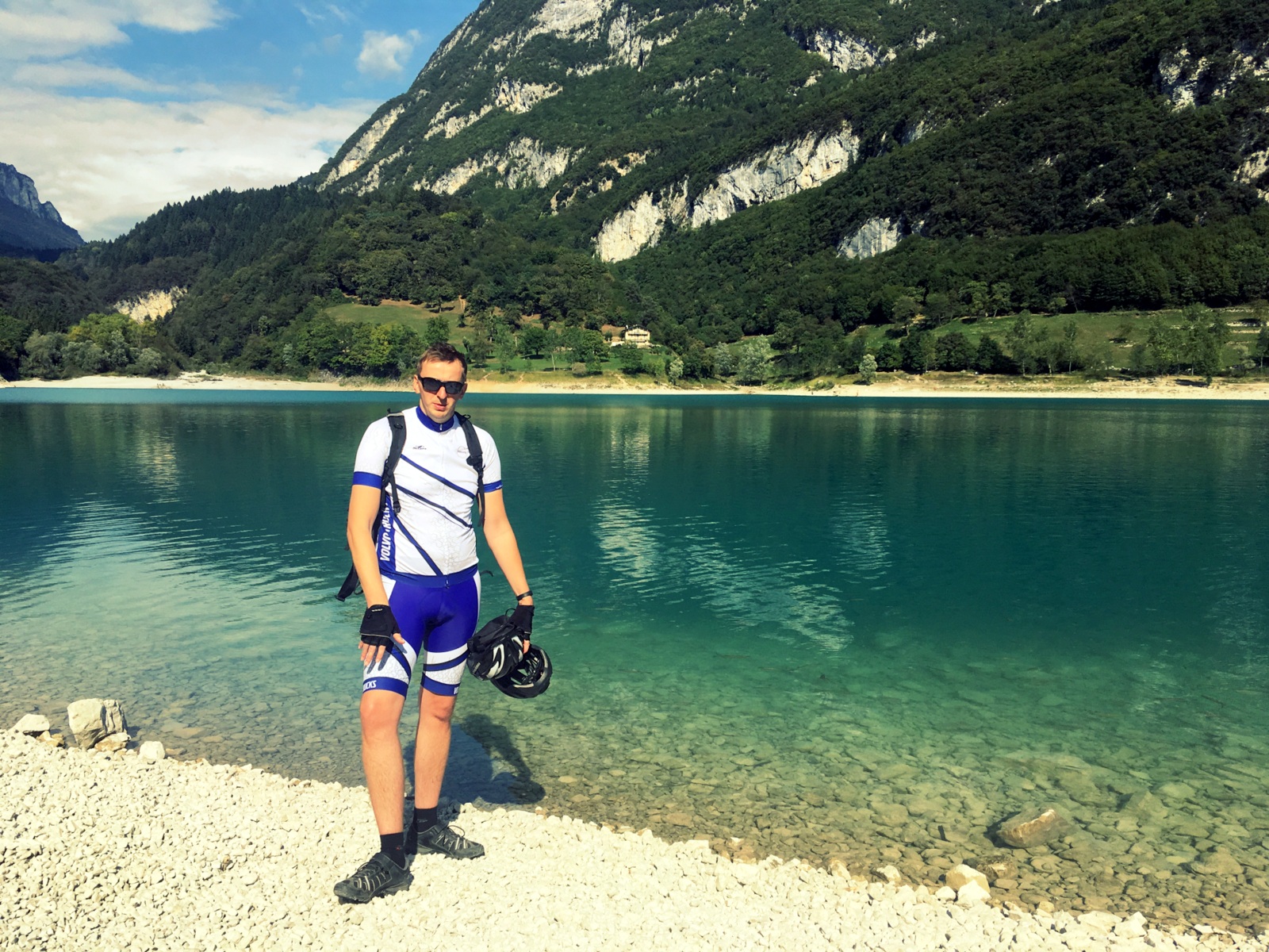 Nám během cyklu výletu vyhládlo, a proto parkujeme naše kola a sedáme si v oblíbené místní restauraci, s výhledem na Ledro, na tradiční mušle k obědu. Jezero Ledro poté objíždíme a vracíme se stezkou zpět do Riva del Garda.