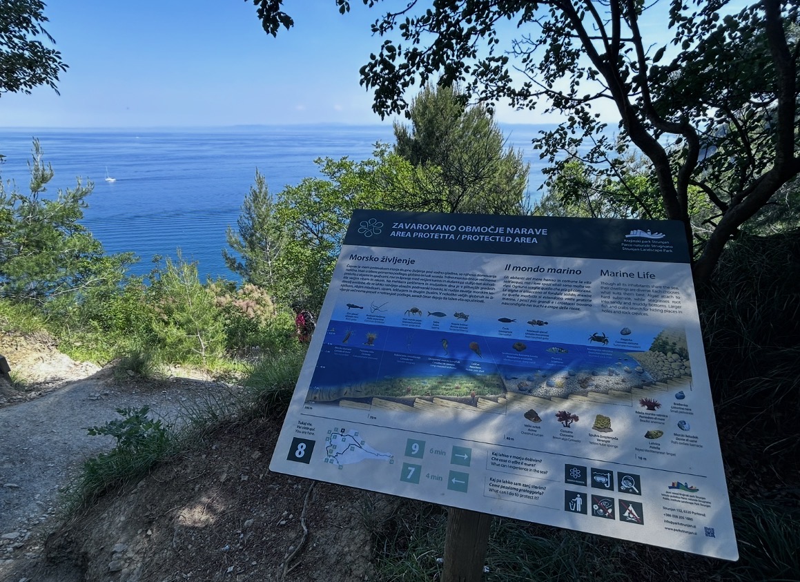 - Der Ort ist leicht zu Fuß über markierte Wege in Richtung des schönsten Strandes Sloweniens – Mondbucht – erreichbar und ist besonders bei Sonnenuntergang beliebt, wenn die Klippen und das Meer markante Goldtöne annehmen. Es ist ein ruhiger, symbolischer Ort, der die natürliche Schönheit mit der spirituellen Atmosphäre der Landschaft verbindet.