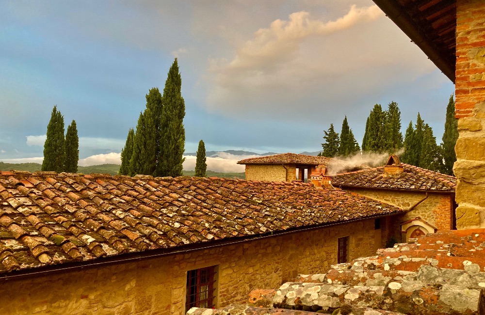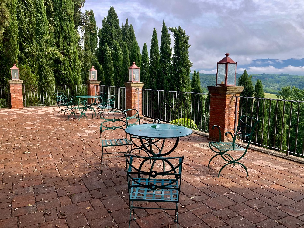 Sie sind buchstäblich von jedem Schritt in diesem atemberaubenden Dorf mit atemberaubendem Blick auf die toskanische Landschaft verzaubert. Die sich nähernde Gewitterfront, die angesichts der hohen Temperaturen zu erwarten war, trägt zur Dramatik bei. Umso mehr sind wir froh, dass sich unser Apartment in der Nähe des kostenlosen Parkplatzes an der Villa befindet.