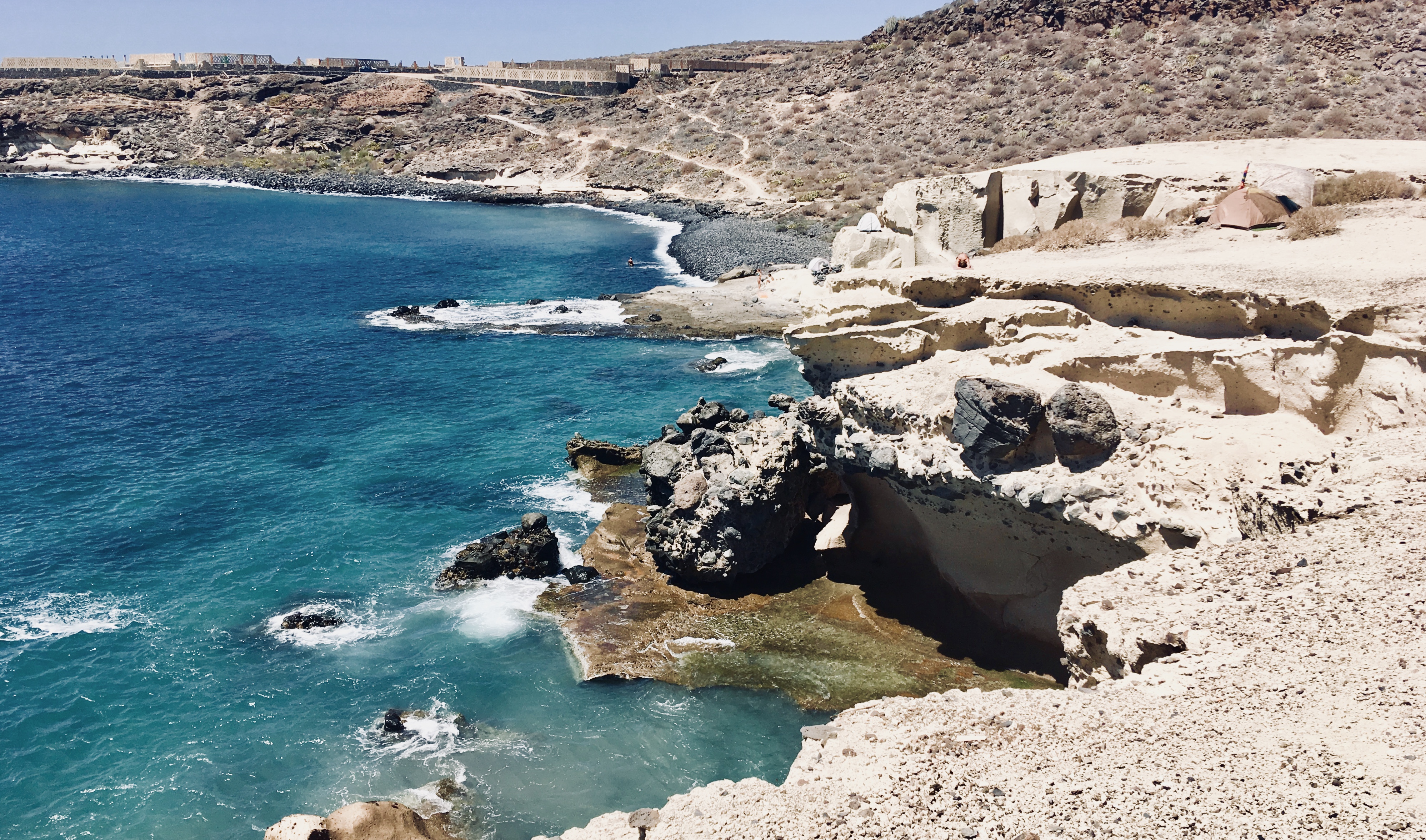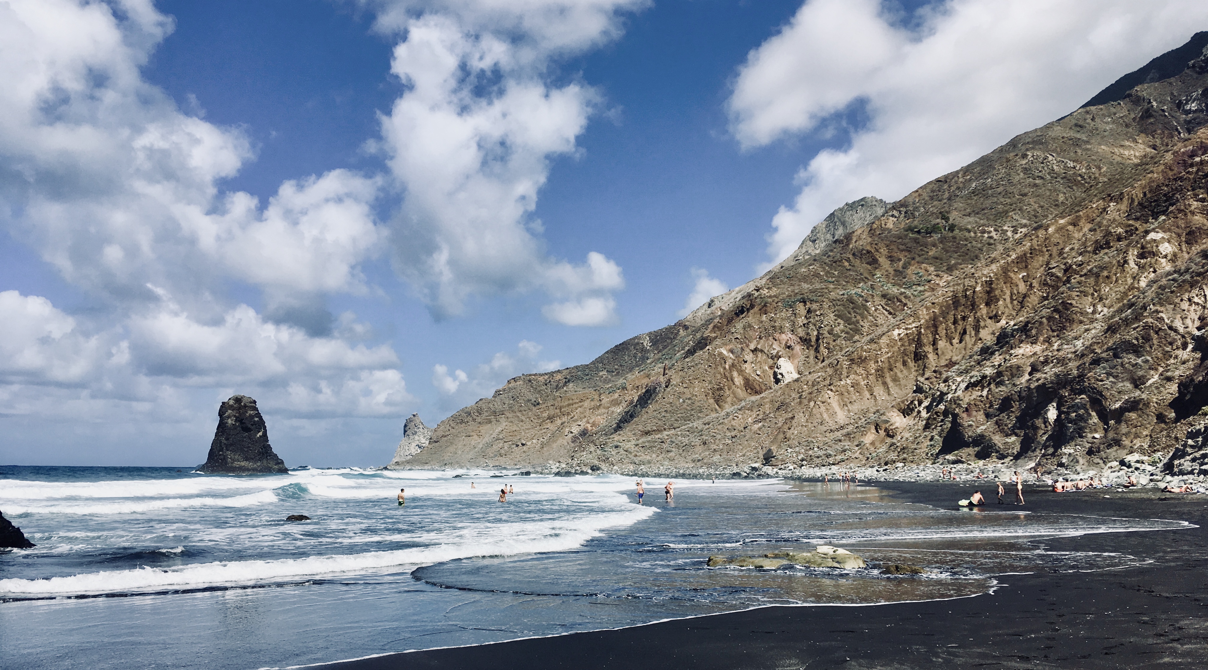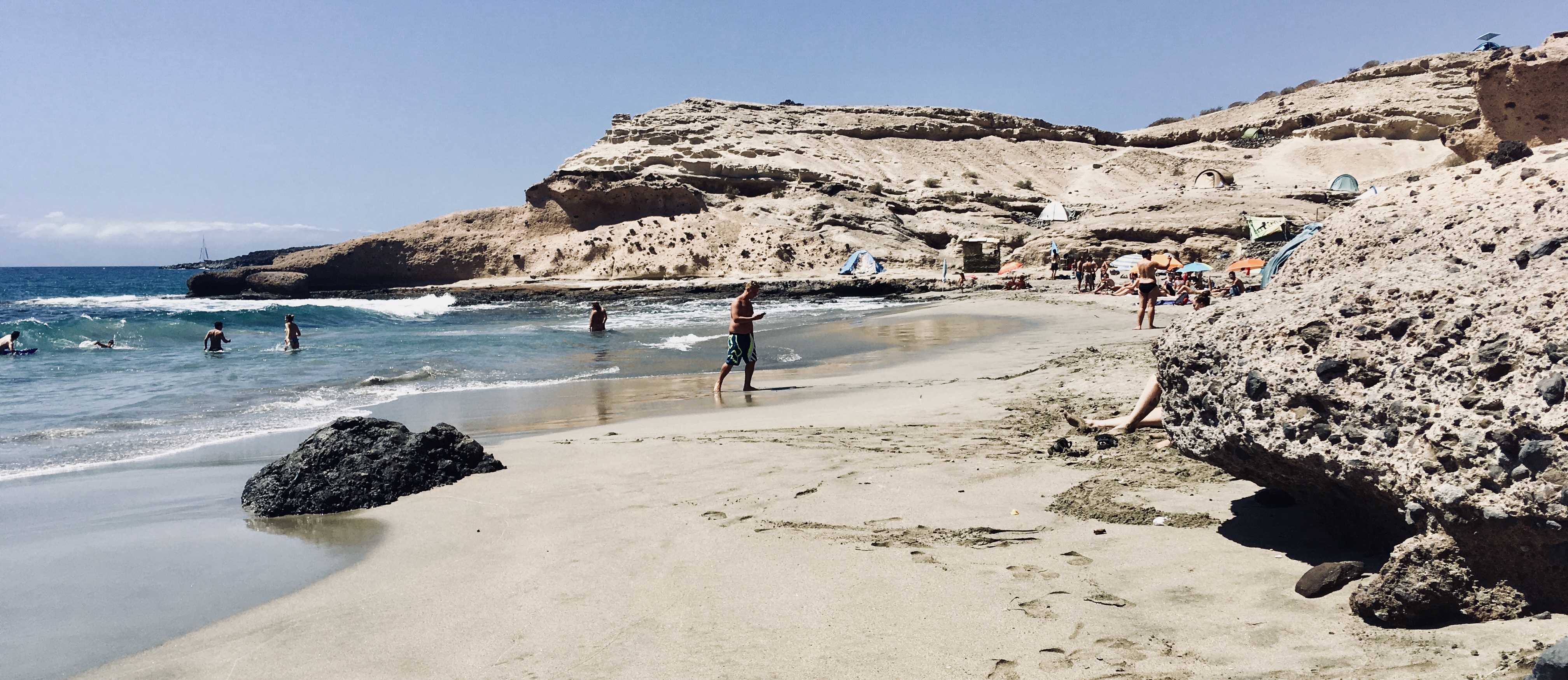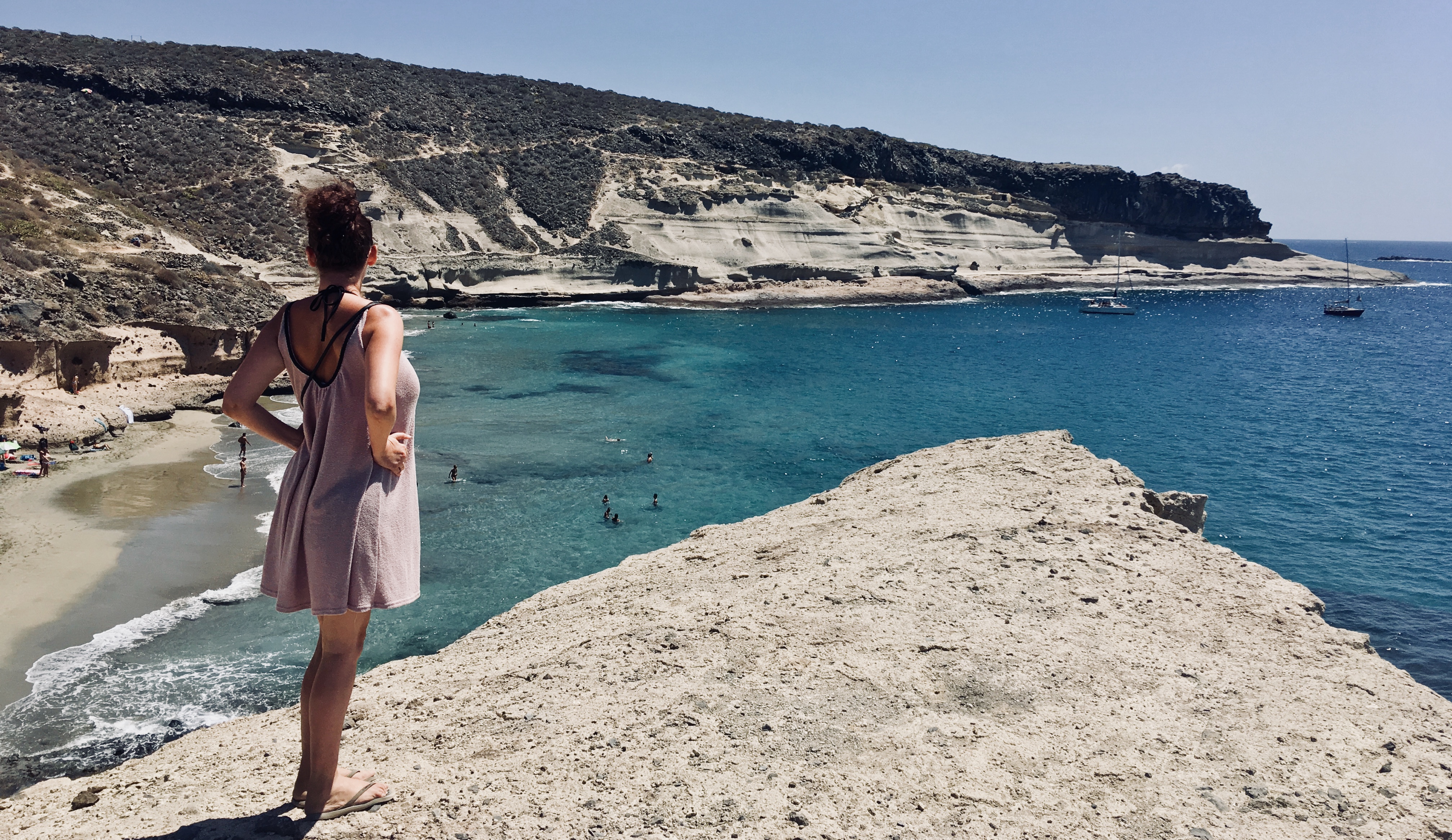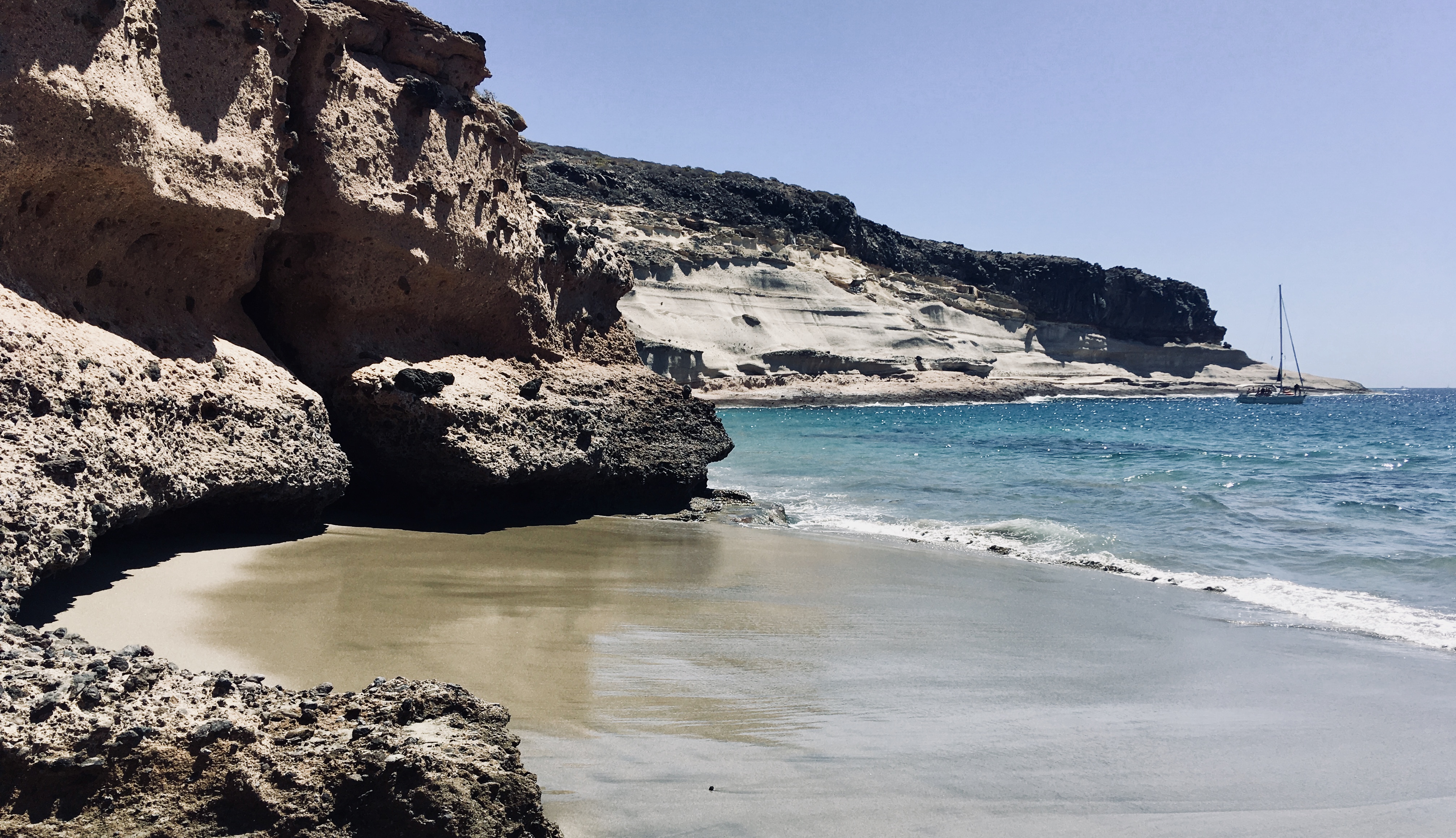 The beach is very diverse and you can swim pretty much along its entire length. Besides that, several tour boats arrive during the day, parking near the shore and transforming into party boats in the evening. We claimed a piece of beach behind the cliffs, created by the low tide, all to ourselves and didn’t leave until just before sunset, as this place captivated us. This beach definitely became one of our favorite trips in Tenerife.