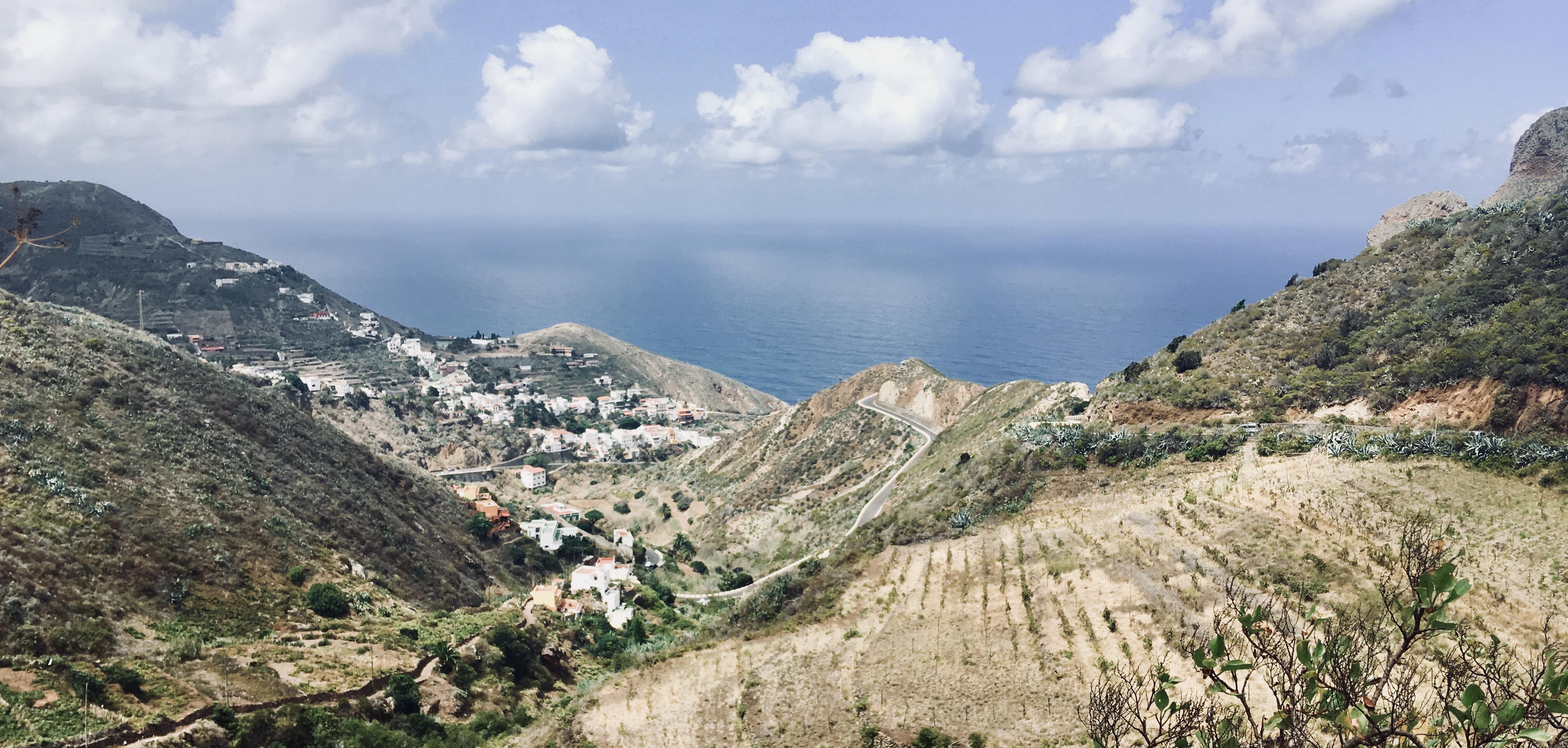 Actually, while climbing through Parque Rural de Anaga, we were considering whether we should turn back and return here in nice weather. Fortunately, we weren’t discouraged by the clouds that were sitting over Tenerife’s capital at that moment, and as a reward, the other side of the mountains and the coast below Taganana welcomed us with pleasant partly cloudy skies.