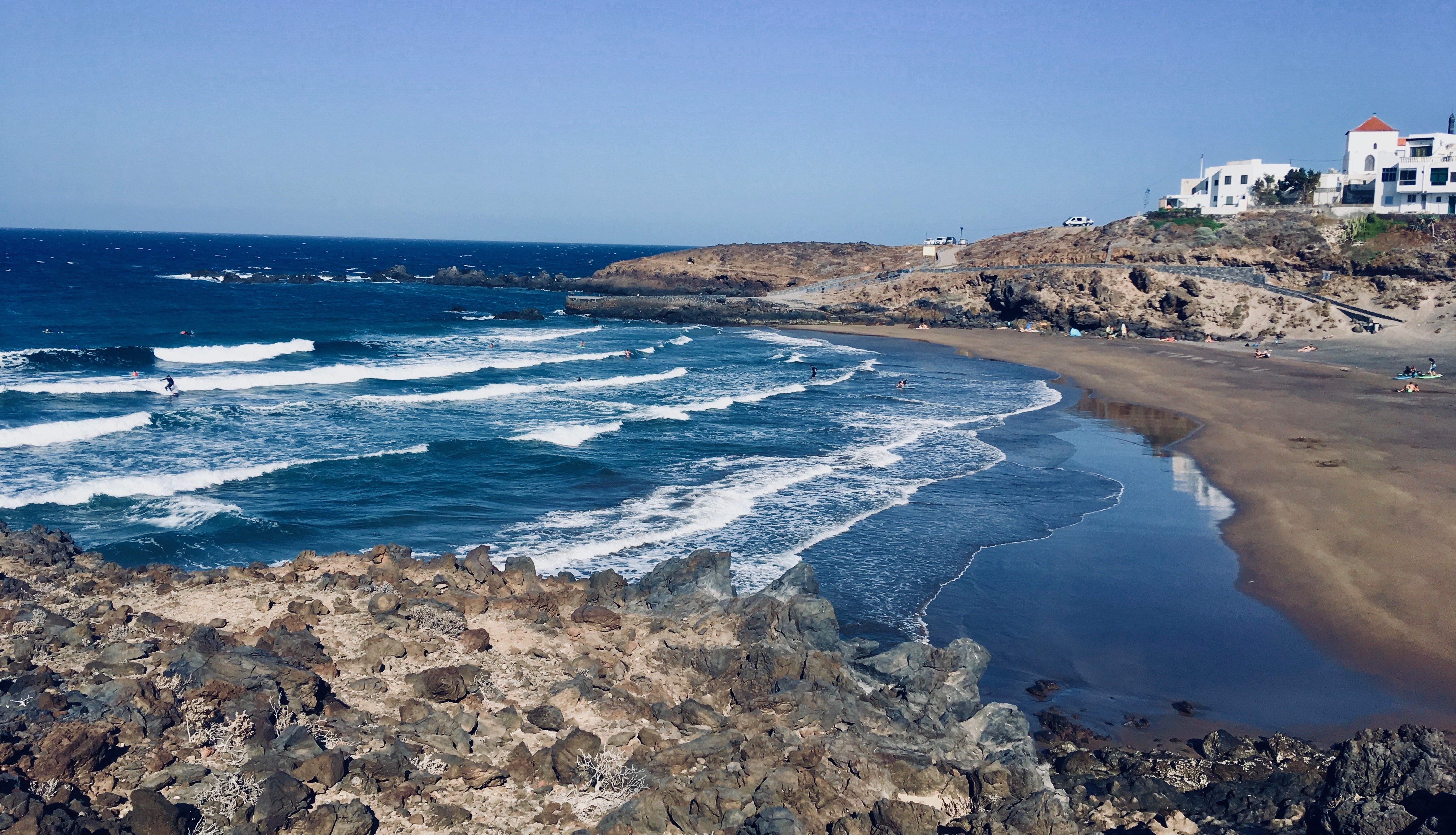 If you look up Playa de Diego Hernández on maps, you’ll find that no road leads here. You’ll have to either park at the large free parking lot in La Caleta, or leave your car along the road by the golf course and walk down to the beach around the fence, just as we did.
