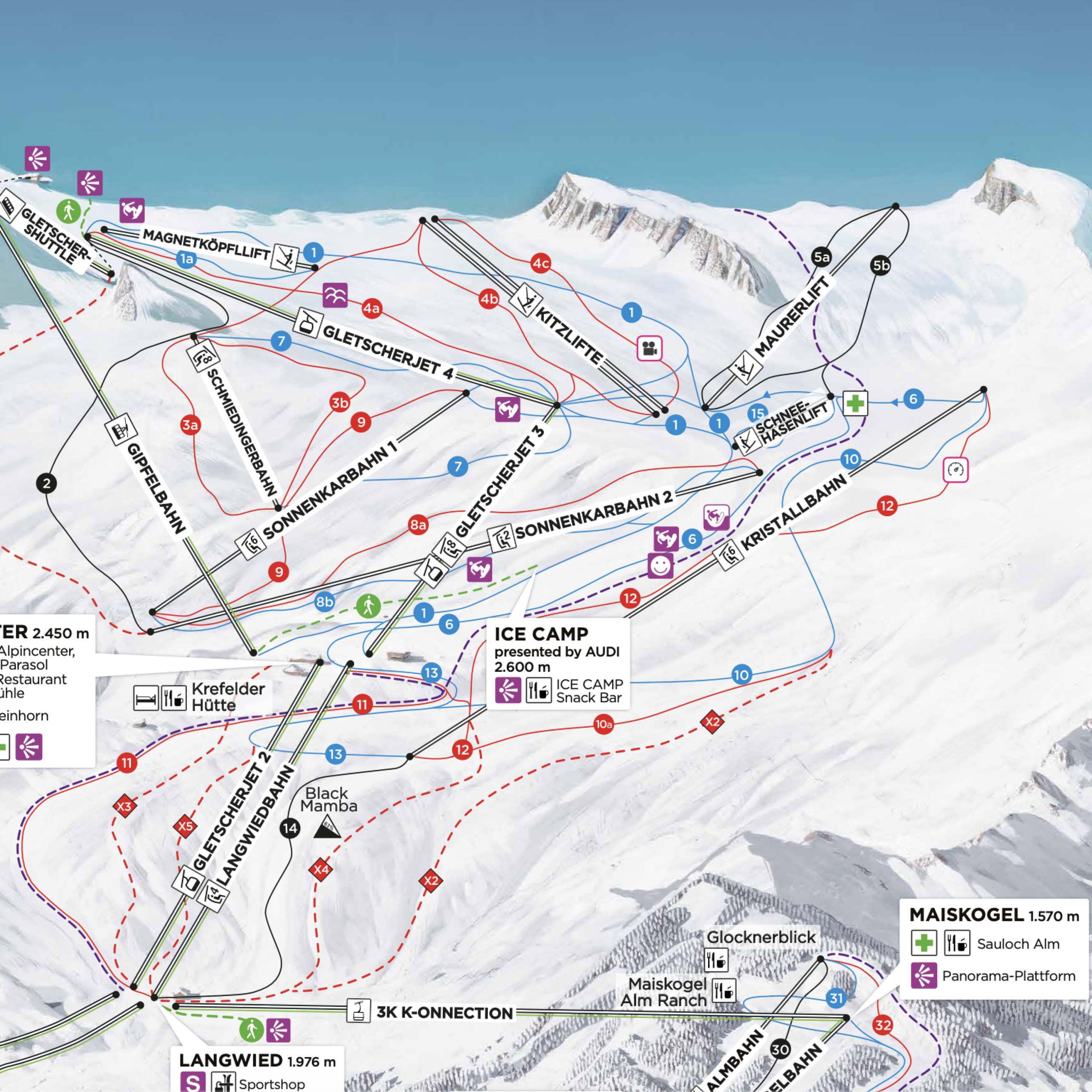 Mapa lyžařského střediska: Ledovec Kitzsteinhorn + Skipas