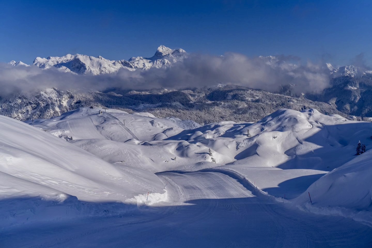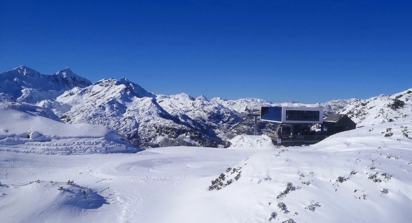 Lyžařské středisko Vogel nabízí přehledný areál s výhledem na Triglav a zázemím pro všechny úrovně lyžařů. Poprvé jsem tento skiareál v Bohinj navštívila před deseti lety a dodnes se za místní pohádkovou atmosférou vždy ráda vracím. K dispozici je dětský park, mini freestyle park, snowpark i trať X run.