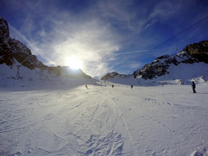 Kvalitní podmínky jsou samozřejmě za předpokladu, že občas zasněží. My si vybrali termín, kdy zde již několik dní nezasněžilo, a tak nebylo úplně příjemné sjíždět až do spodní stanice. Každopádně kvalita sněhu a úprava sjezdovek na samotném vrcholu byla skvělá. Pouze první den jsme měli smůlu na menší větrnou bouři, a tak nám hned po obědě zavřeli kabinovou lanovku na vrchol a ten kdo to neumí s kotvami si už prostě nezajezdil.