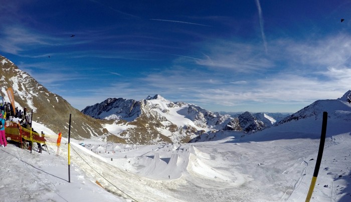 Pokud navíc milujete snowparky, budete tu jako v ráji. Měli jsme štěstí, že zde zrovna trénovali své skoky skvělé hvezdy na lyžích i na snowboardu. Musím se přiznat, že před každou cestou dolů jsem tu vydržela pozorovat jejich jízdy desítky minut.