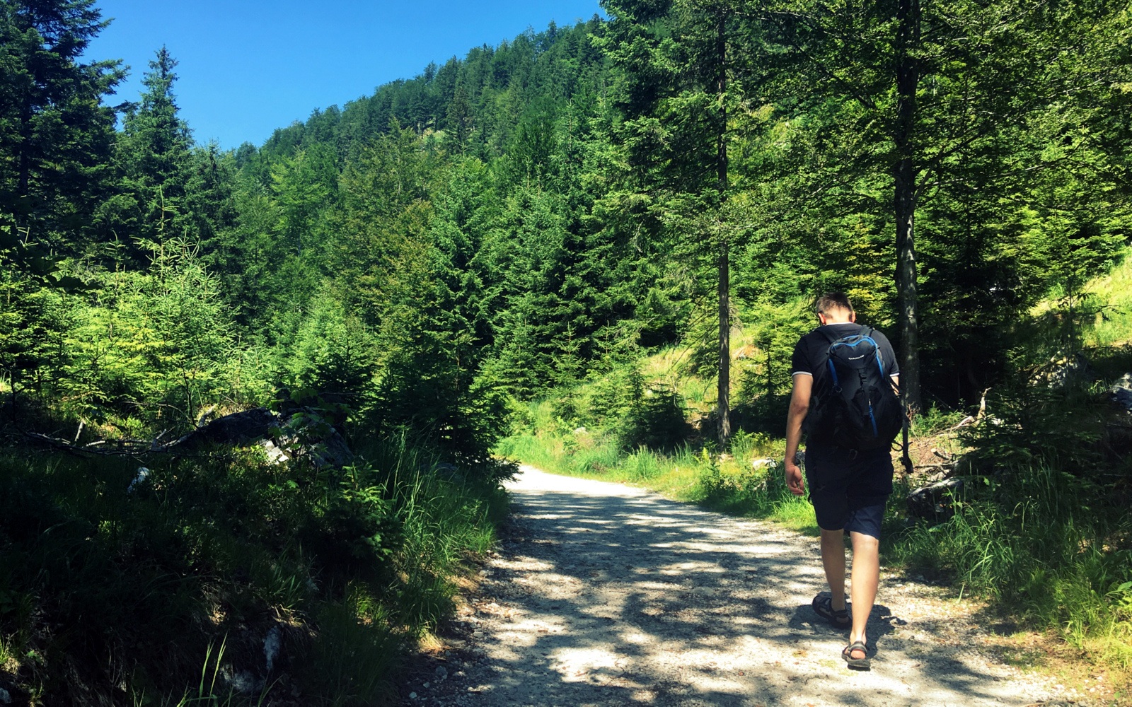 Vyrazili jsme hned po snídani s tím, že ve Freistadtu jsme si zastavili na nákup svačiny. Trasa je zpočátku podobná jako na cestě k Traunsee. Pro poslední desítky kilometrů se však již budete stáčet přímo po cedulích přírodního parku a městečka Grünau im Almtal, které je posledním větším městem v oblasti Almtal před námi plánovanými jezery Kleiner a Grosser Ödsee.