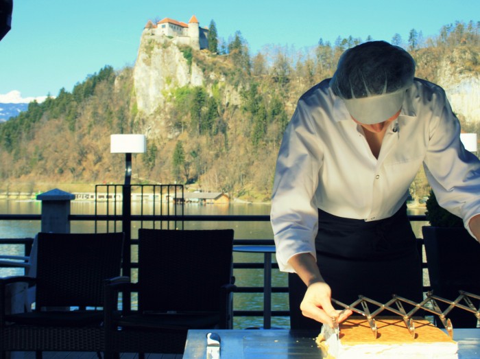 - Navštivte kavárnu naproti hotelu Park – dejte si zákusek a kávu s dechberoucím výhledem na jezero a hrad Bled