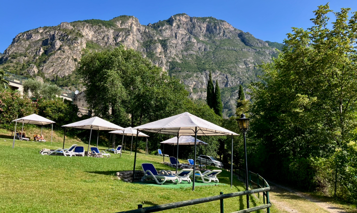 Limone sul Garda – zahrada na opalování u našeho hotelu, pár metrů od pláže
