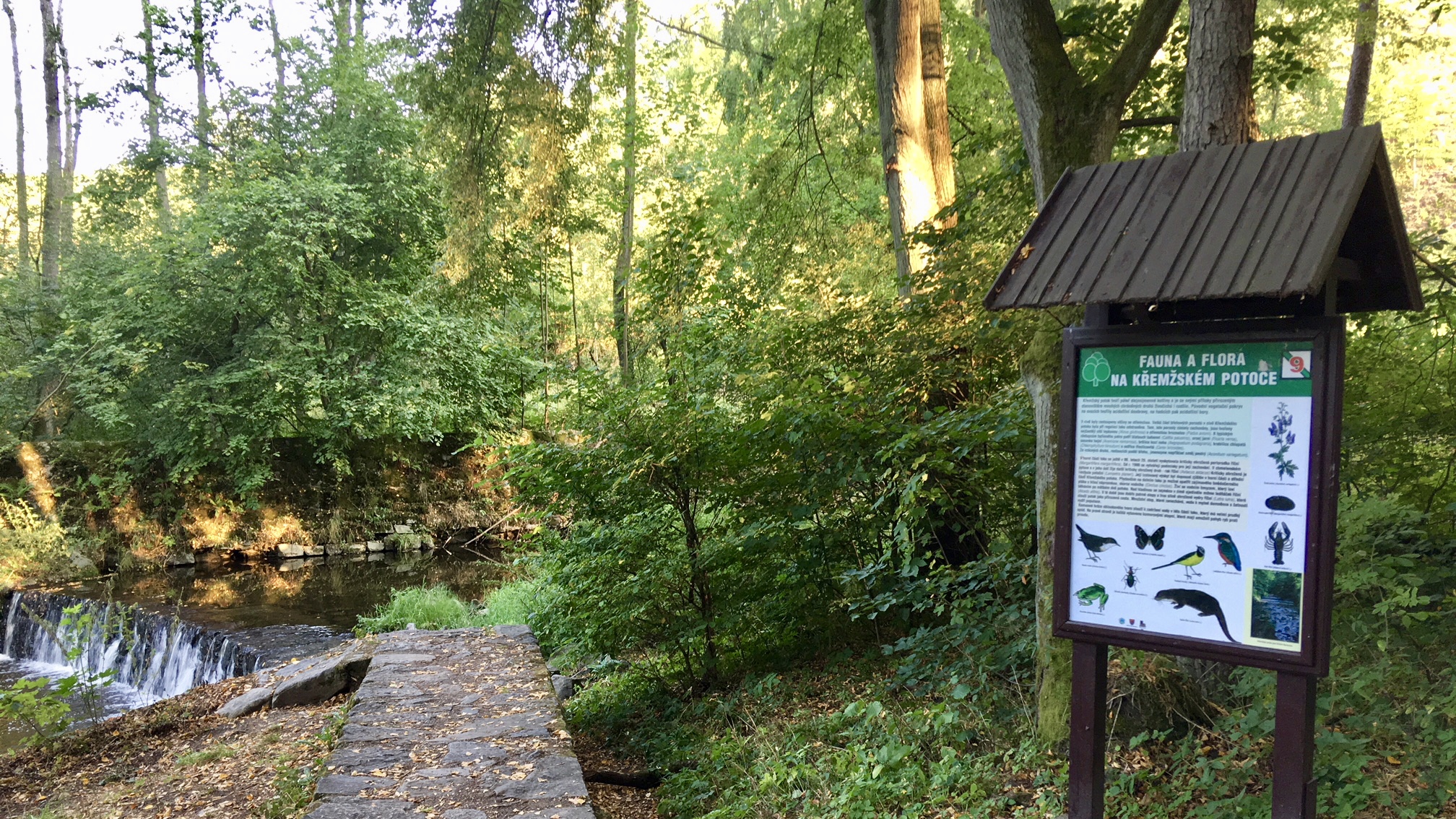 Jak už jsem zmínila, ideální je začít od parkoviště u zastávky vlaku Třísov. Hned po pár metrech dojdete k první tabuli a k rozcestí se stromem. Osobně se vypravujeme na procházky rovně a zleva se poté z okruhu vracíme. Cesty jsou zde víceméně jen pěší, ale čas od času zde auto potkáte, když některý z majitelů místních chat bude projíždět.